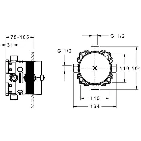 - Profondeur d’encastrement: 75