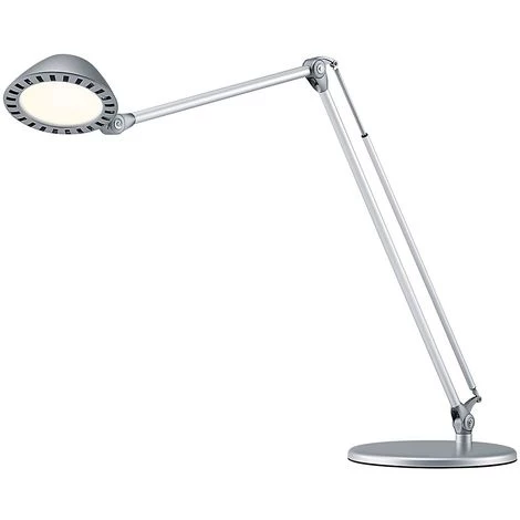 La lampe de table BLOSSOM est conçue pour l’éclairage professionnel du poste de travail. Elle est livrée avec une lampe DEL de 5 watts produisant une lumière claire blanc neutre (4 000 kelvins) et possède un variateur d’intensité à cinq niveaux. Le variateur monté sur la tête sphérique (Ø 105 mm) possède une fonction mémoire. La tête de la lampe se positionne librement, assurant ainsi une flexibilité optimale d’utilisation. Grande portée (max. 770 mm) grâce à la structure articulée. Hauteur maximale de la lampe : 750 mm.