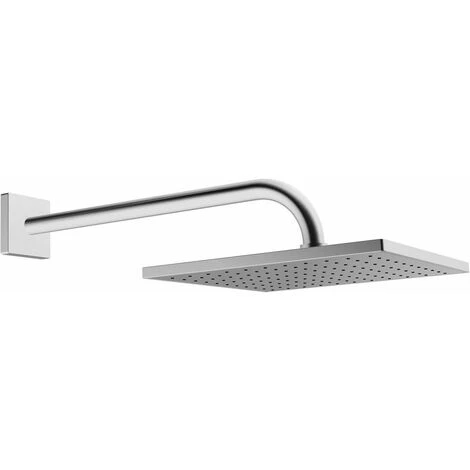 La douche de tête HANSAVIVA DN 15 (G 1/2) est en laiton, carrée 250×250 mm, et équipée de la technologie anti-calcaire. Elle est livrée avec un bras de douche de 400 mm (modèle renforcé, tube Ø 26 mm), une rosace carrée pour raccord plafond anti-torsion, un limiteur de débit et un raccord sphérique orientable à 56°. Le débit est de 12 l/min, mesuré à 3 bar de pression dynamique, l´écoulement minimum conseillé est de 7 l/min.